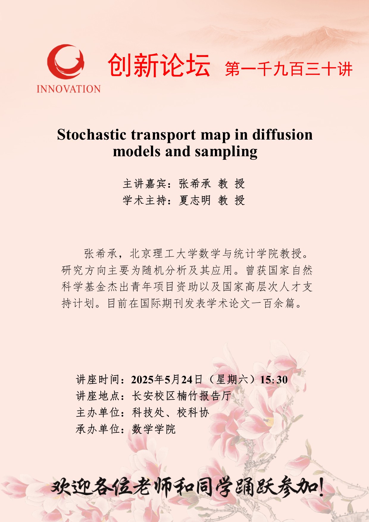 张希承 教授 九游会在线登录官网创新论坛第一千九百三十讲:Stochastic transport map in diffusion models and sampling 讲座时间 2025年5月24日(星期六)15:30 讲座地点 长安校区楠竹报告厅 讲座人介绍 张希承 教授 讲座内容