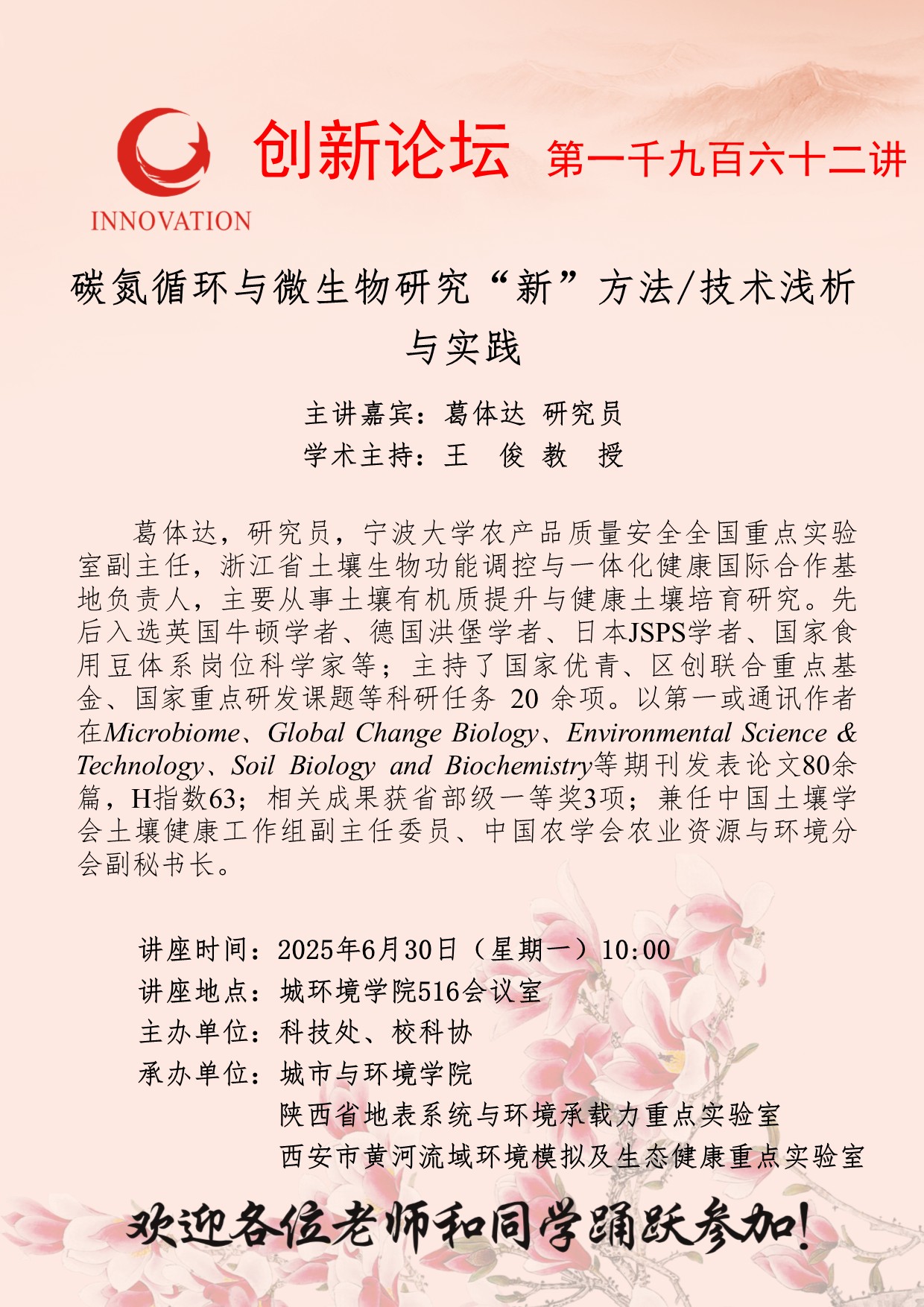 葛体达 研究员 九游会在线登录官网创新论坛第一千九百六十二讲:碳氮循环与微生物研究“新”方法/技术浅析与实践 讲座时间 2025年6月30日(星期一)10:00 讲座地点 城环境学院516会议室 讲座人介绍 葛体达 研究员 讲座内容
