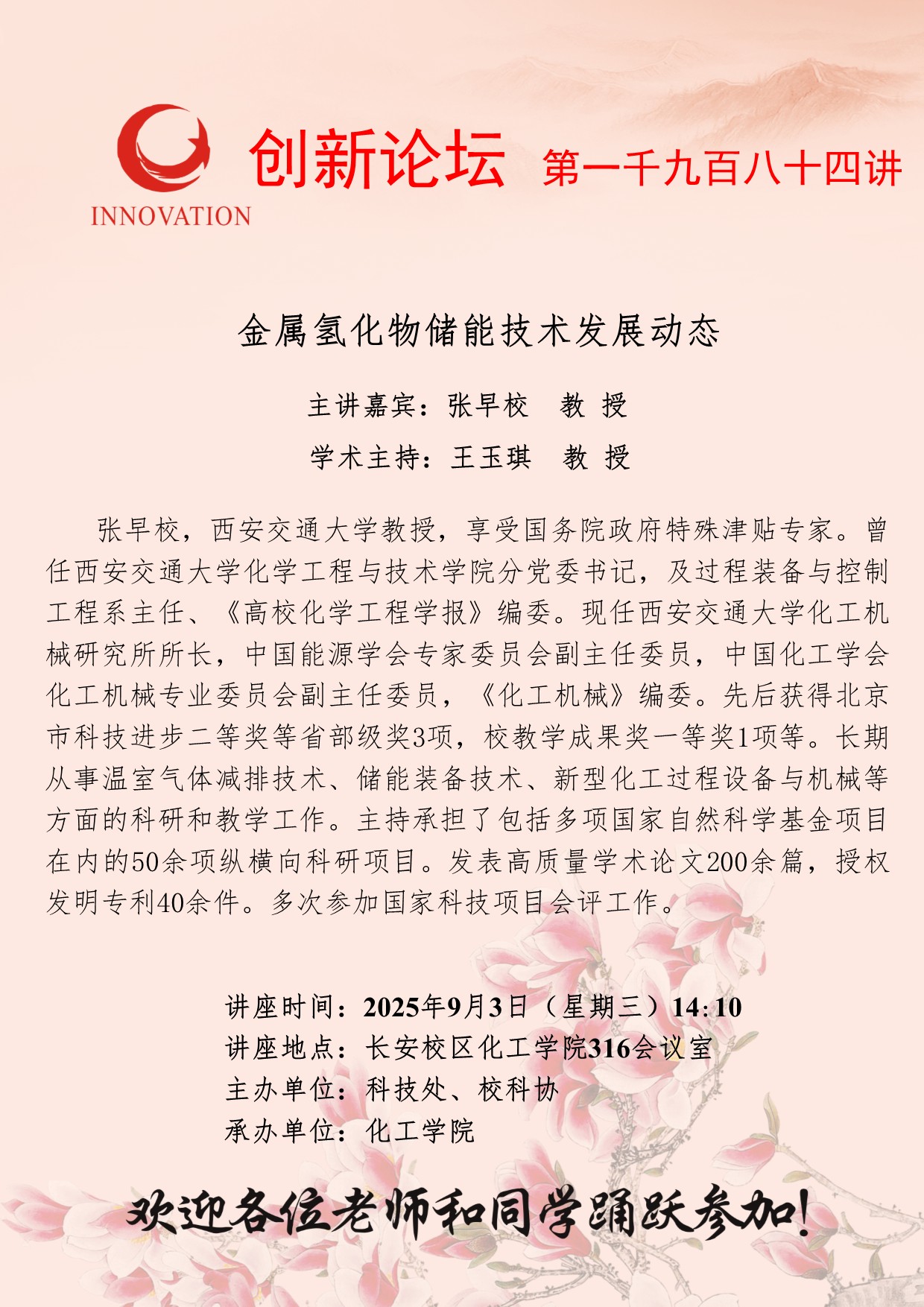 张早校 教授 九游会在线登录官网创新论坛第一千九百八十四讲:金属氢化物储能技术发展动态 讲座时间 2025年9月3日(星期三)14:10 讲座地点 长安校区化工学院316会议室 讲座人介绍 张早校 教授 讲座内容