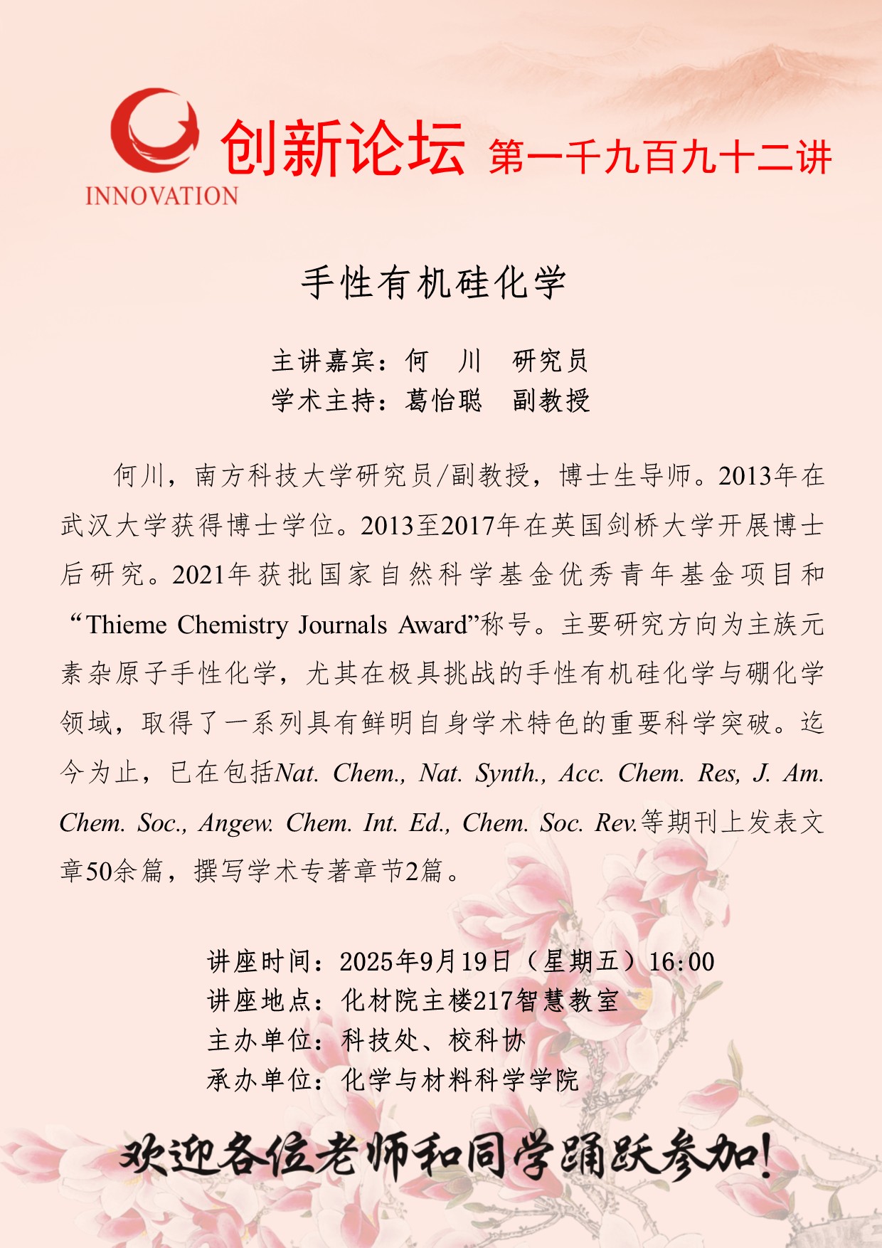 九游会在线登录官网创新论坛第一千九百九十一讲:高效催化促进药物绿色制造