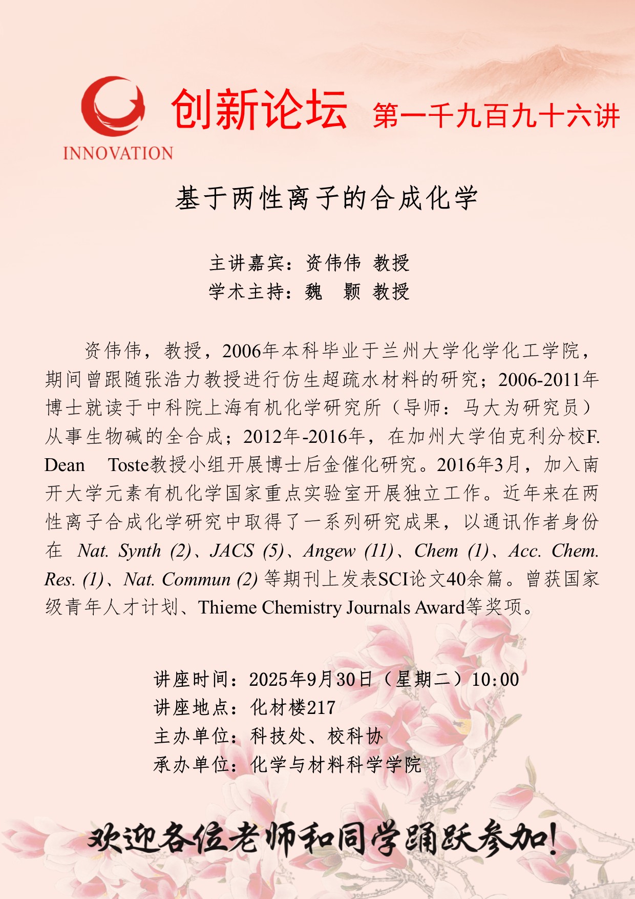 九游会在线登录官网创新论坛第一千九百九十六讲: 基于两性离子的合成化学