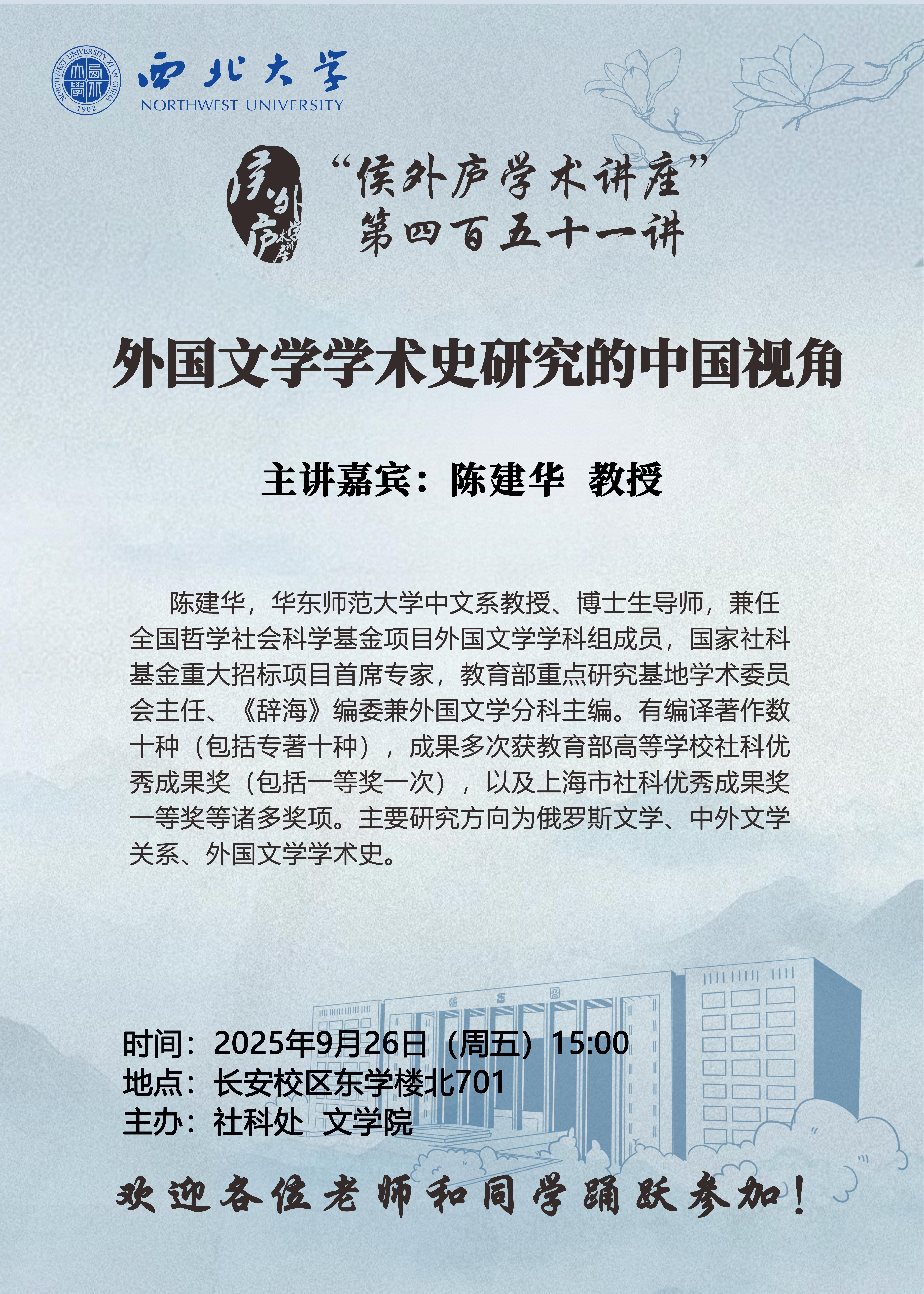 “侯外庐学术讲座”第四百五十一讲:外国文学学术史研究的中国视角
