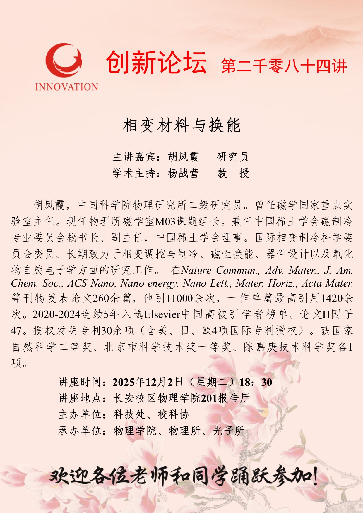 胡凤霞 研究员 九游会在线登录官网创新论坛第二千零八十四讲:相变材料与换能 讲座时间 2025年12月2日(星期二)18:30 讲座地点 长安校区物理学院201报告厅 讲座人介绍 胡凤霞 研究员 讲座内容