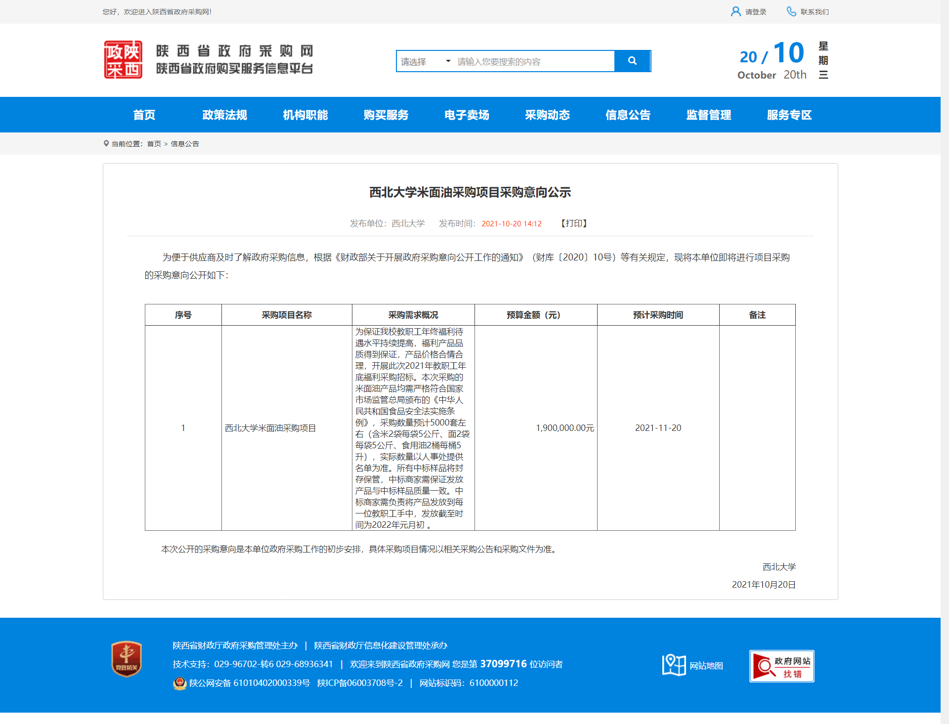 九游会在线登录官网米面油采购项目采购意向公示 作者: 编辑:采购与招标办公室 时间:2021-10-20 原公告地址:http://www.ccgp-shaanxi.gov.cn/notice/noticeDetail.do?noticeguid=8a85be337c20d0b4017c9c4e47dd0a64