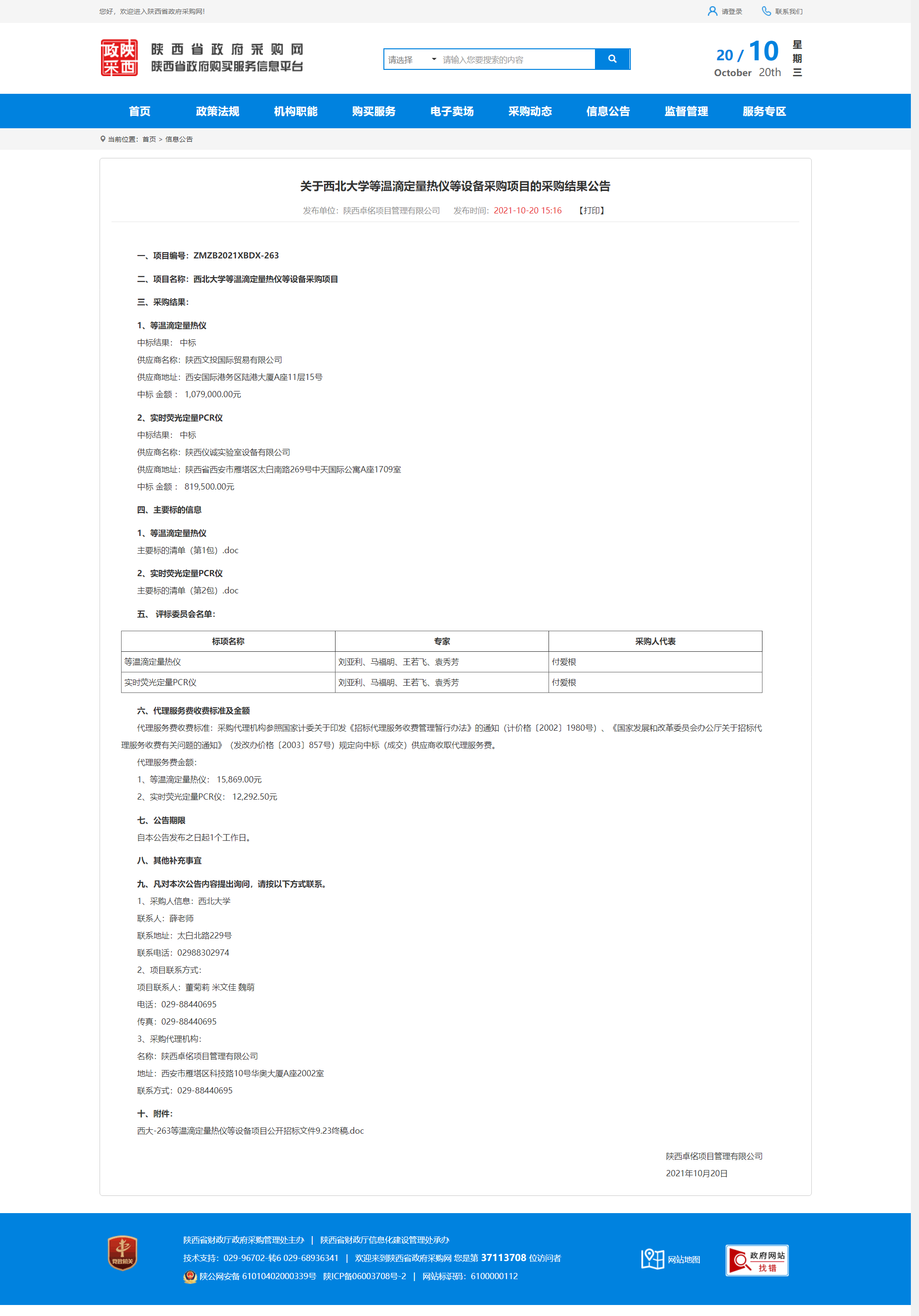 关于九游会在线登录官网等温滴定量热仪等设备采购项目的采购结果公告 作者: 编辑:采购与招标办公室 时间:2021-10-20 原公告地址:http://www.ccgp-shaanxi.gov.cn/notice/noticeDetail.do?noticeguid=8a85be347c20ca18017c9c8904bf7cd9