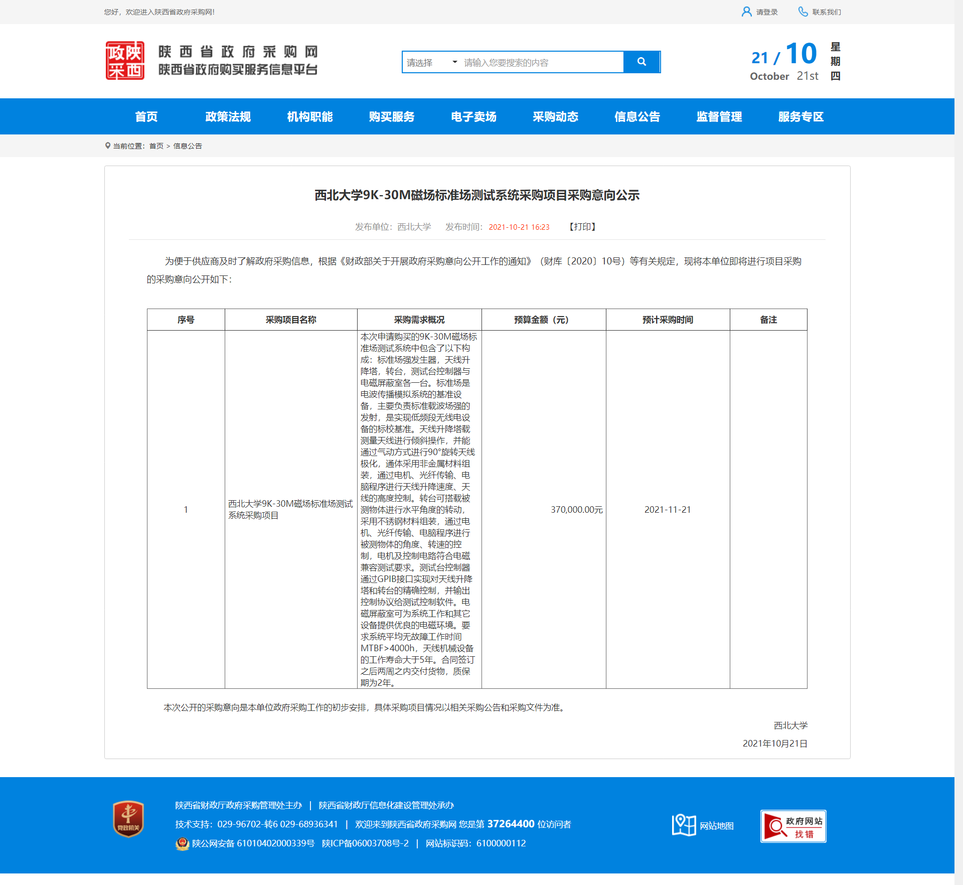 九游会在线登录官网9K-30M磁场标准场测试系统采购项目采购意向公示 作者: 编辑:采购与招标办公室 时间:2021-10-21 原公告地址:http://ccgp-shaanxi.gov.cn/notice/noticeDetail.do?noticeguid=8a85be337c20d0b4017ca1bd9ec34088