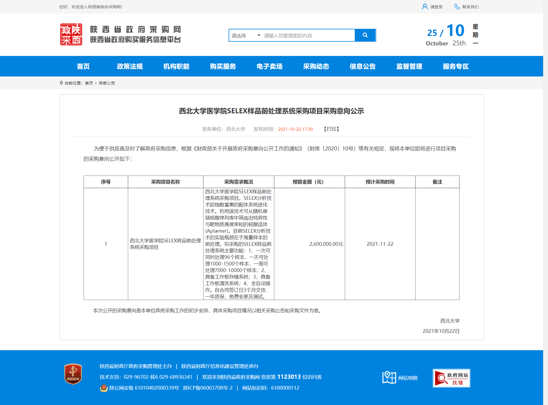 九游会在线登录官网医学院SELEX样品前处理系统采购项目采购意向公示 作者: 编辑:薛利娟 时间:2021-10-25 原公告地址:http://www.ccgp-shaanxi.gov.cn/notice/noticeDetail.do?noticeguid=8a85be337c20d0b4017ca7551f1b7c5b