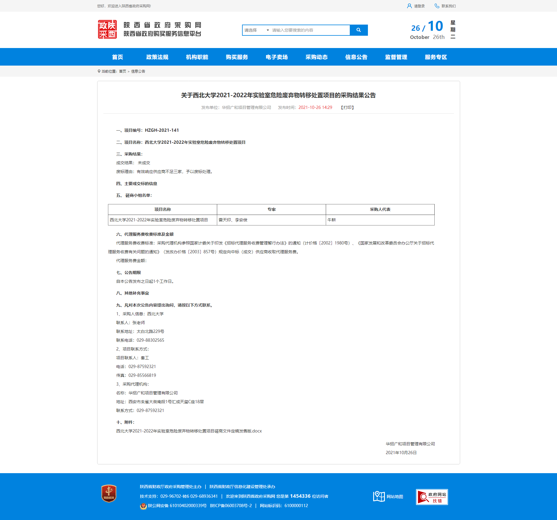 关于九游会在线登录官网2021-2022年实验室危险废弃物转移处置项目的采购结果公告