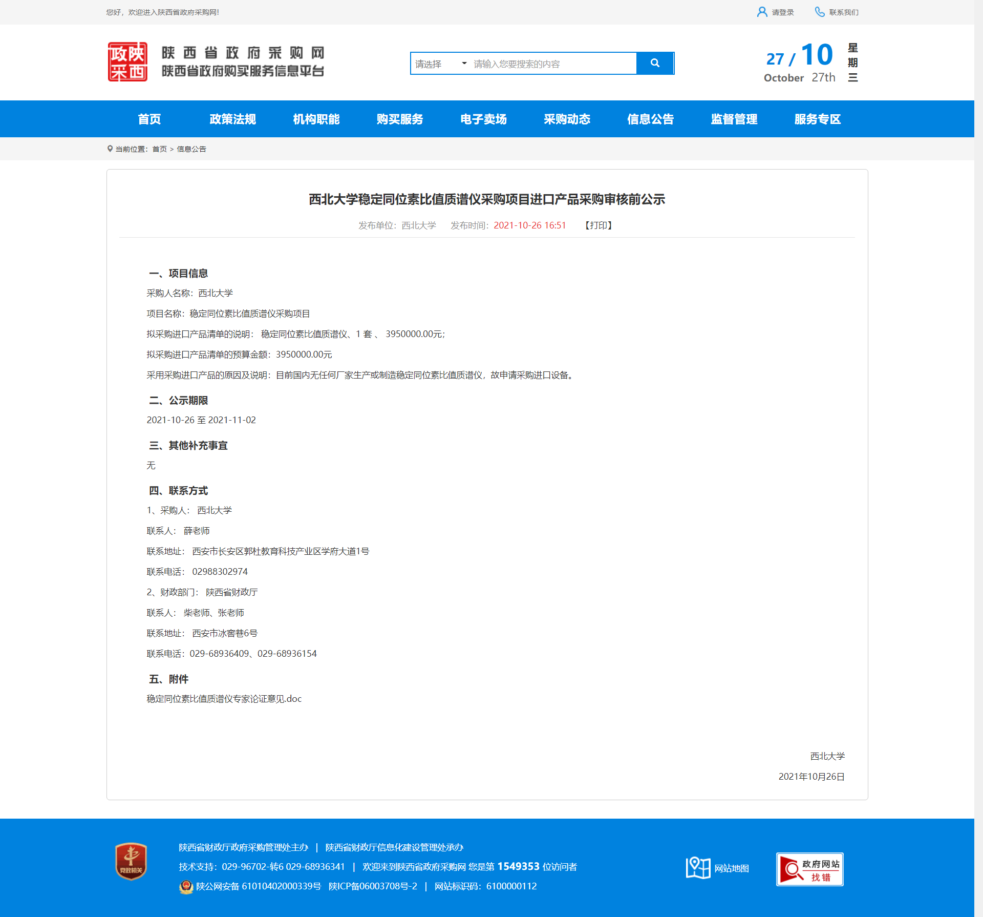 九游会在线登录官网稳定同位素比值质谱仪采购项目进口产品采购审核前公示 作者: 编辑:薛利娟 时间:2021-10-27 原公告地址:http://www.ccgp-shaanxi.gov.cn/notice/noticeDetail.do?noticeguid=8a85be317c20d707017cbbc8d6dd7269