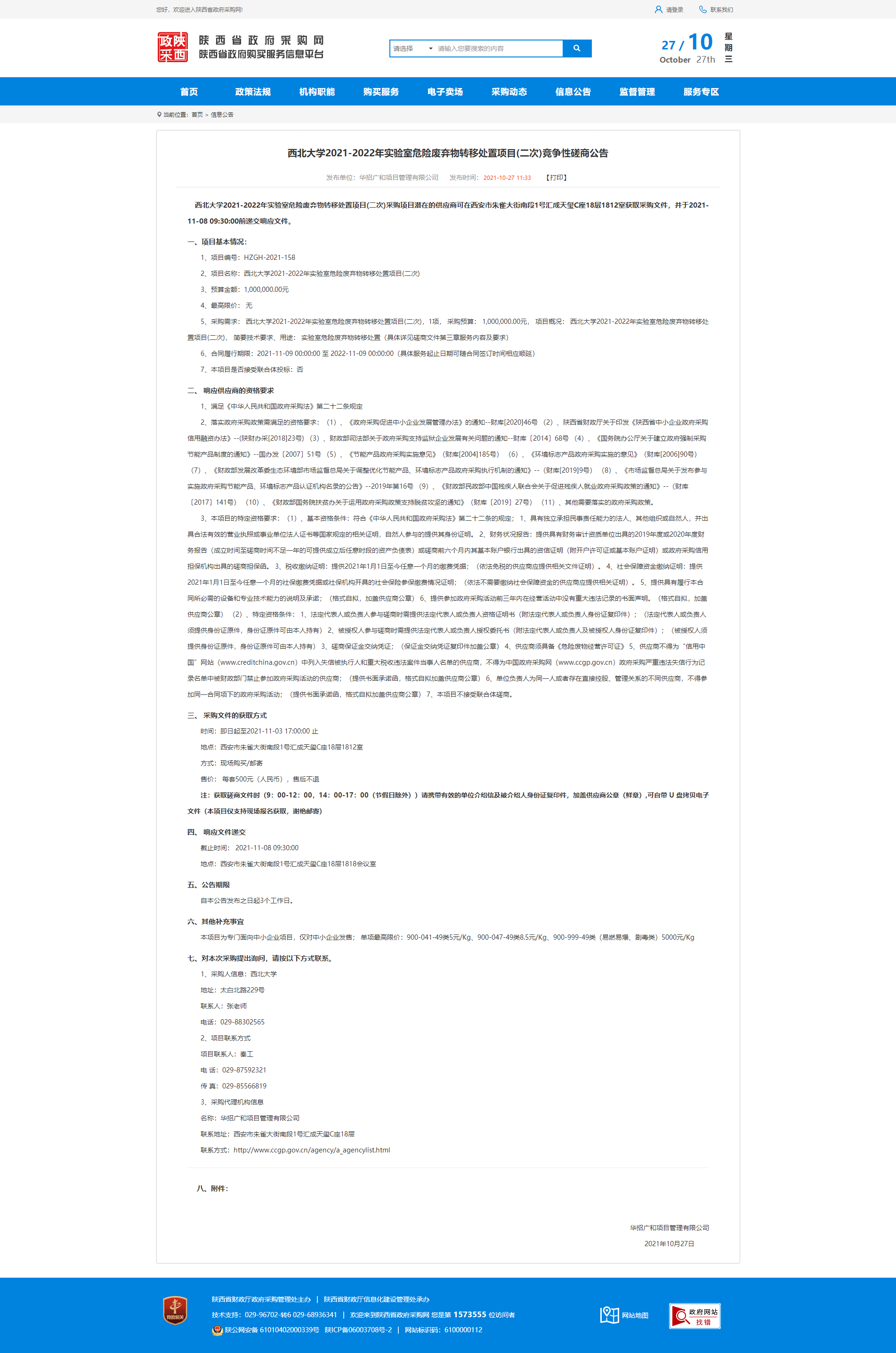 九游会在线登录官网2021-2022年实验室危险废弃物转移处置项目(二次)竞争性磋商公告