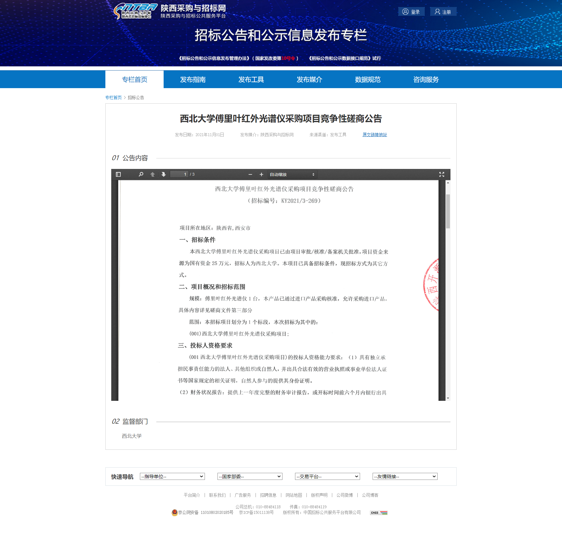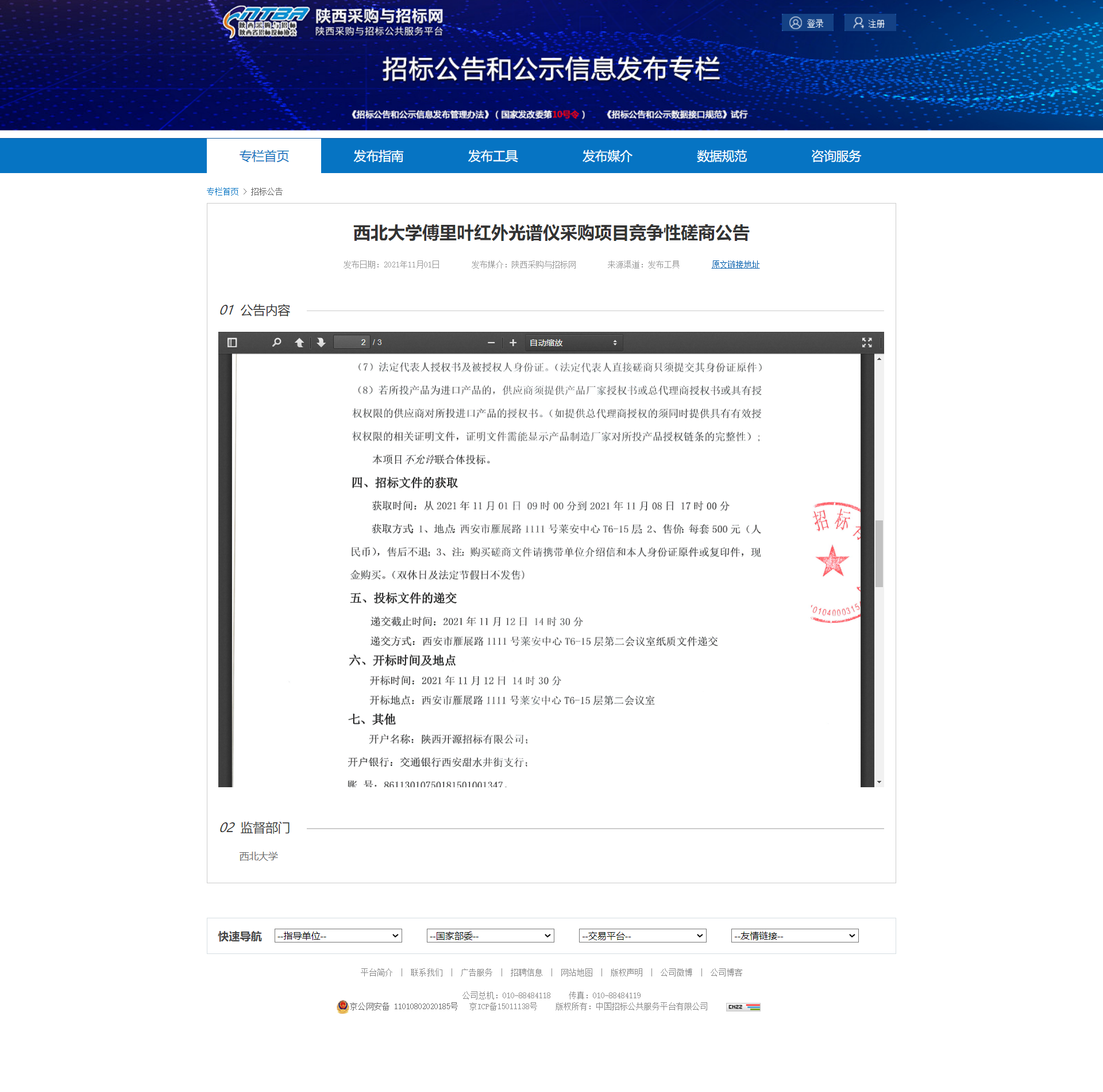 九游会在线登录官网傅里叶红外光谱仪采购项目竞争性磋商公告 作者: 编辑:薛利娟 时间:2021-11-01 原公告地址:http://bulletin.sntba.com/biddingBulletin/2021-11-01/359204.html