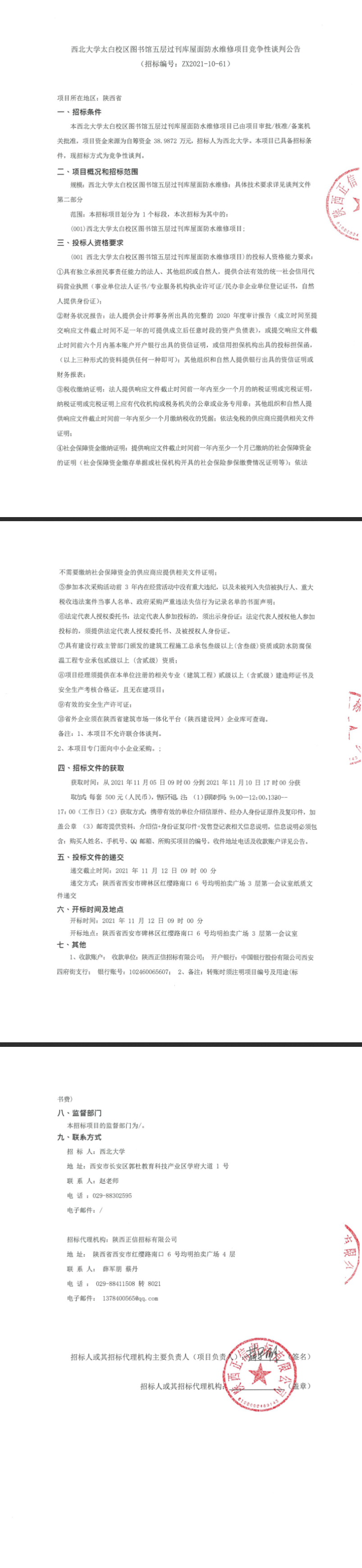 九游会在线登录官网太白校区图书馆五层过刊库屋面防水维修项目竞争性谈判公告
