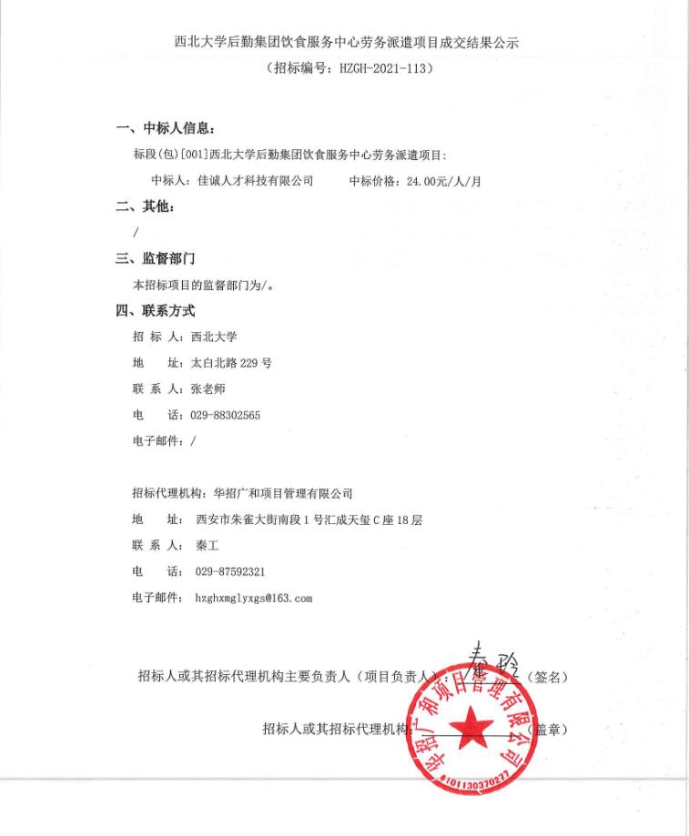 关于九游会在线登录官网后勤集团饮食服务中心劳务派遣项目成交结果公告