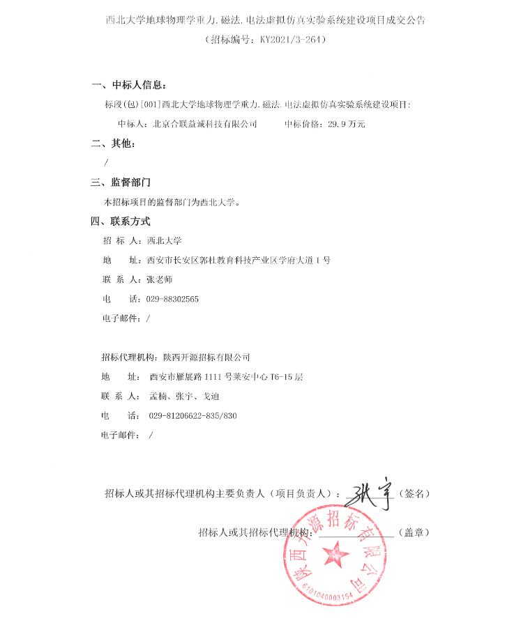 关于九游会在线登录官网地球物理学重力.磁法.电法虚拟仿真实验系统建设项目成交结果公告