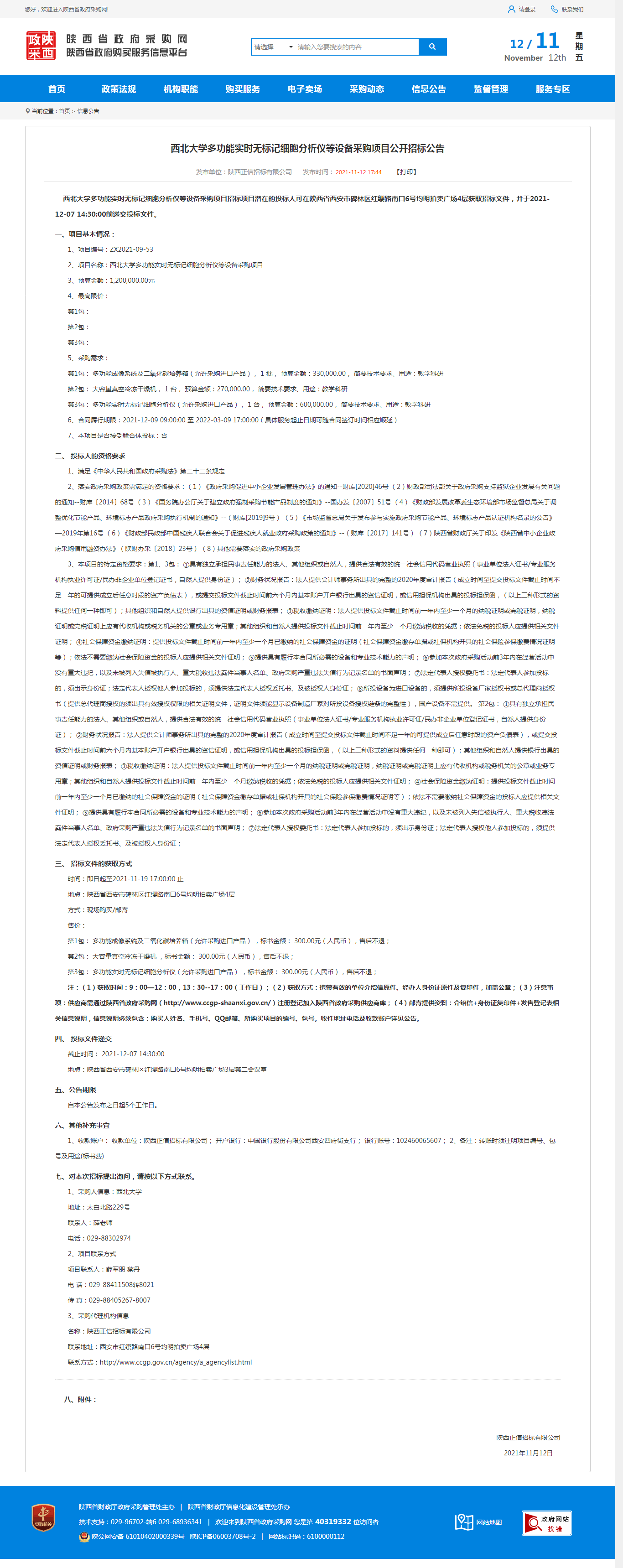 九游会在线登录官网多功能实时无标记细胞分析仪等设备采购项目公开招标公告 作者: 编辑:薛利娟 时间:2021-11-12 原公告网址:http://www.ccgp-shaanxi.gov.cn/notice/noticeDetail.do?noticeguid=8a85be337cefc032017d13792f9f29a1