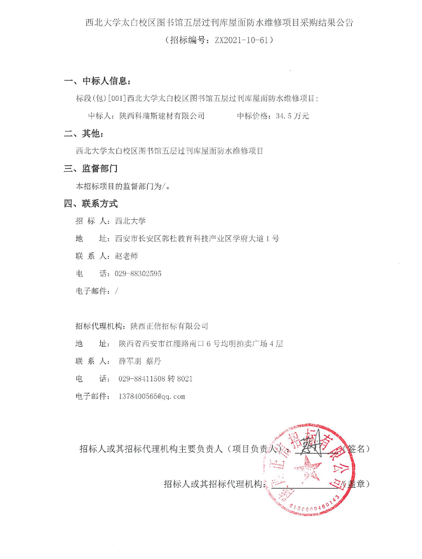 九游会在线登录官网太白校区图书馆五层过刊库屋面防水维修项目采购结果公告