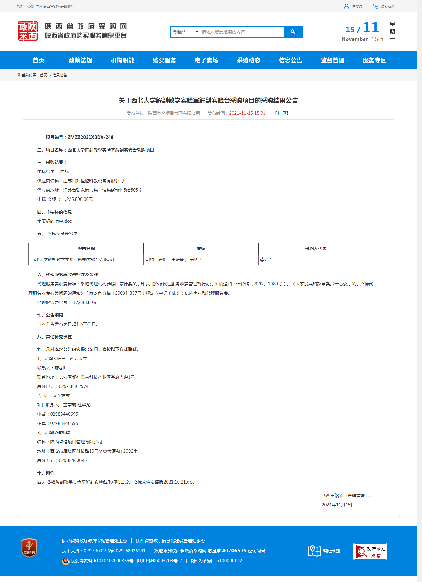关于九游会在线登录官网解剖教学实验室解剖实验台采购项目的采购结果公告 作者: 编辑:薛利娟 时间:2021-11-15 原公告网址:http://www.ccgp-shaanxi.gov.cn/notice/noticeDetail.do?noticeguid=8a85be347cefc0a5017d2265933b409c
