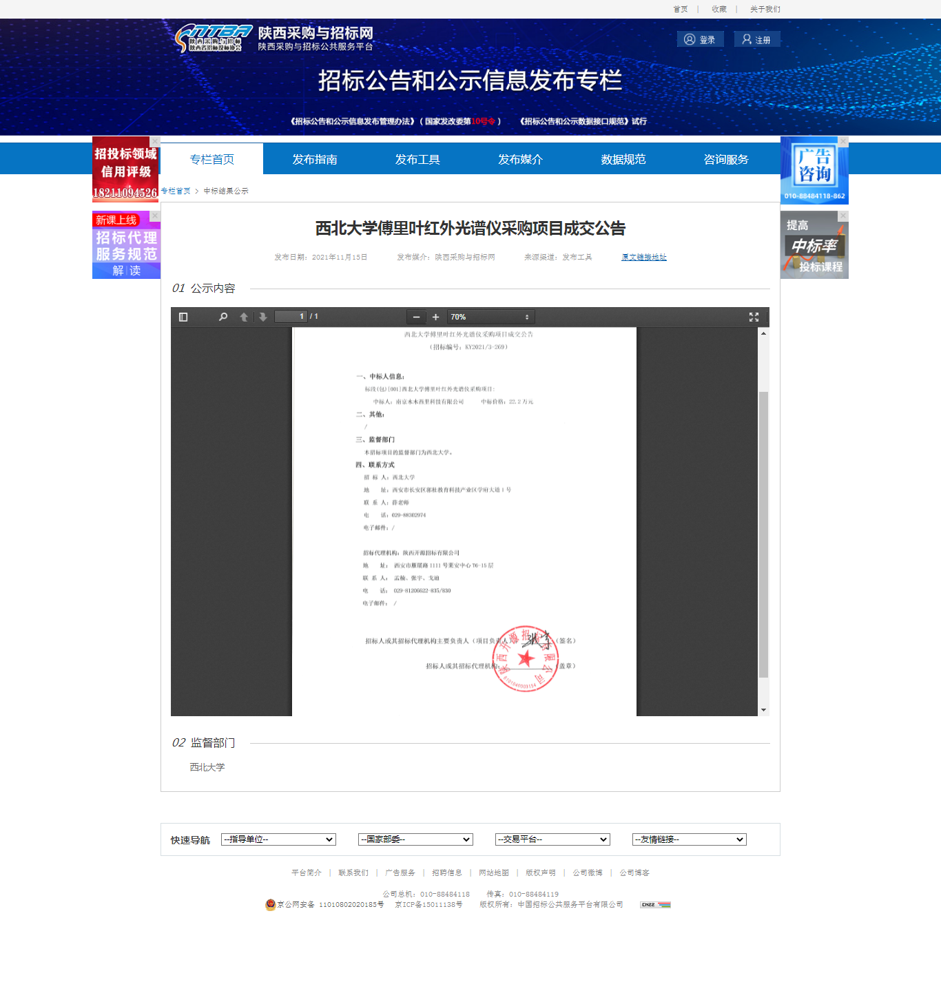 九游会在线登录官网傅里叶红外光谱仪采购项目成交公告 作者: 编辑:薛利娟 时间:2021-11-15 原公告网址:http://bulletin.sntba.com/resultBulletin/2021-11-15/363971.html