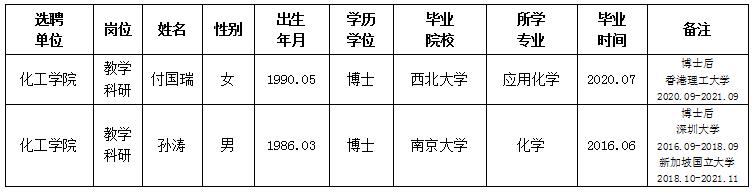 经用人单位推荐,人力资源部审查,学校教学督导及院系相关专家考核,九游会在线登录官网拟确定下列人员来校工作。本着公平、公正、公开的原则,现将本次拟选聘人员基本情况公示如下:
