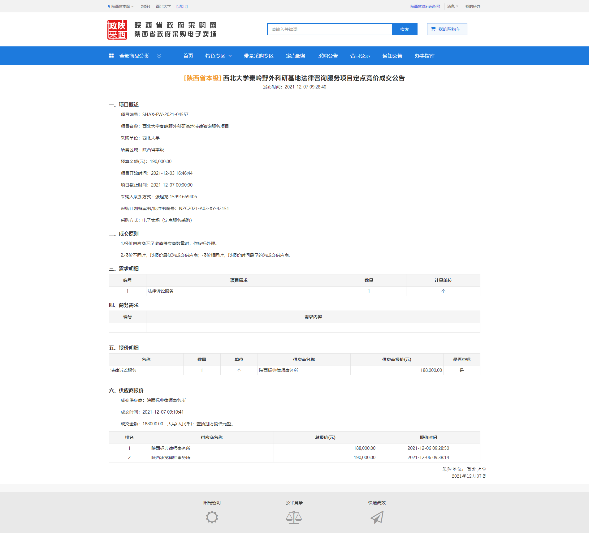 关于九游会在线登录官网秦岭野外科研基地法律咨询服务项目定点竞价成交公告