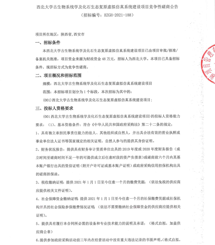 九游会在线登录官网古生物系统学及化石生态复原虚拟仿真系统建设项目竞争性磋商公告