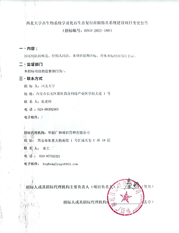 九游会在线登录官网古生物系统学及化石生态复原虚拟仿真系统建设项目变更公告