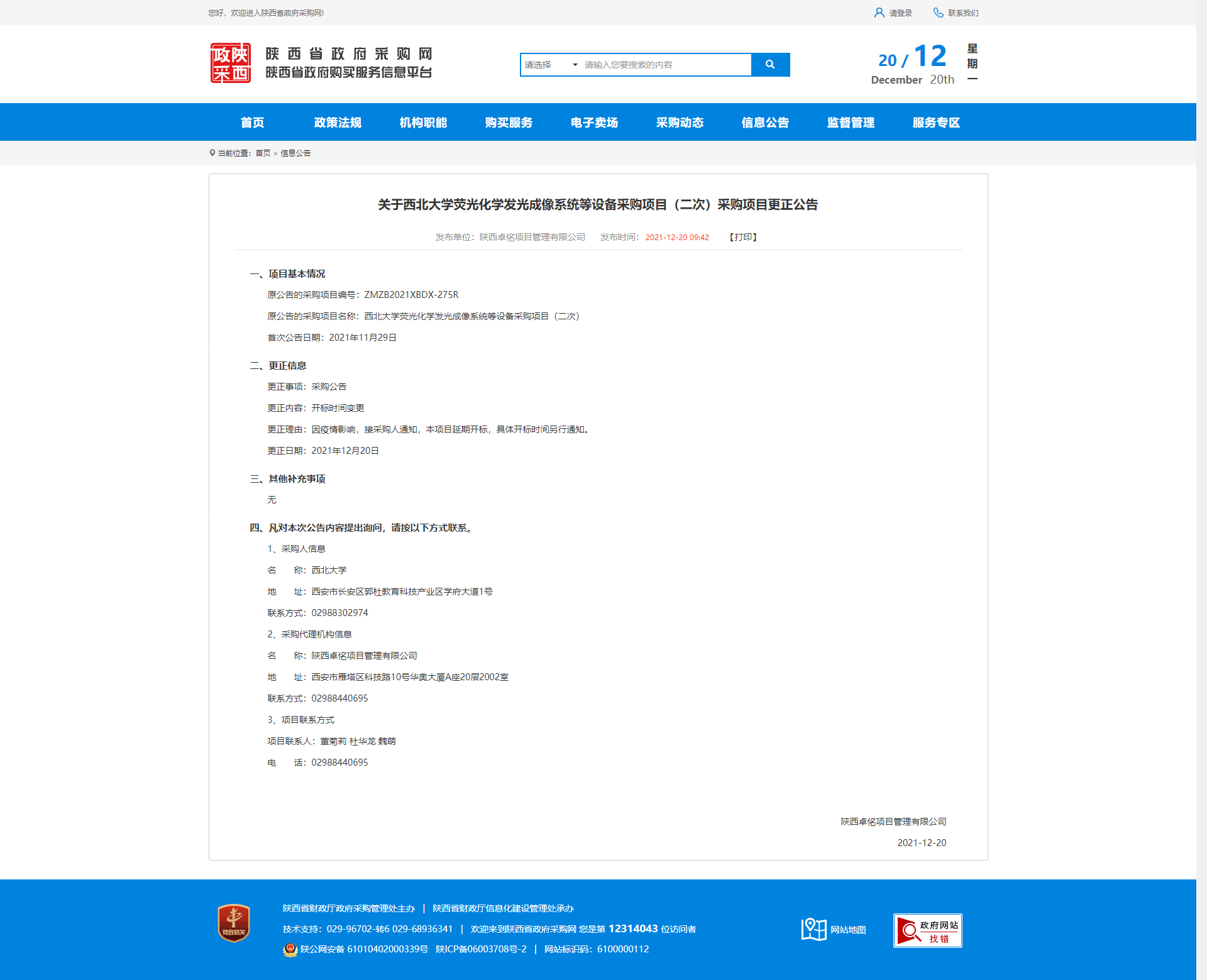 关于九游会在线登录官网荧光化学发光成像系统等设备采购项目(二次)采购项目更正公告 作者: 编辑:薛利娟 时间:2021-12-20 原公告链接:http://www.ccgp-shaanxi.gov.cn/notice/noticeDetail.do?noticeguid=8a85be337dace9ea017dd57d4d013ce2