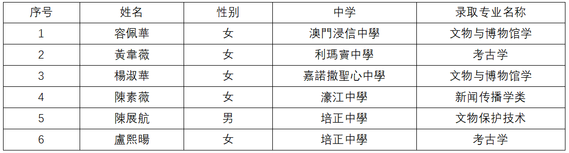 九游会在线登录官网2022年澳门保送生录取名单公示 作者: 编辑: 时间:2022-01-19 根据教育部有关文件精神及《九游会在线登录官网2022年招收澳门保送生简章》要求,日前,九游会在线登录官网组织相关专家对报考九游会在线登录官网的澳门考生进行了线上面试。依据面试综合表现,结合现场集体决议,报请校招生工作领导小组审议并通过,同意以下6名考生获得九游会在线登录官网2022年澳门保送生录取资格,现将名单公示如下: 九游会在线登录官网招生办公室 2022年1月19日