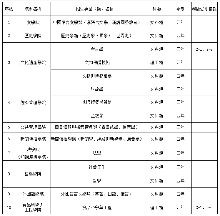 (2)體檢受限標誌代碼說明:2-1色弱;2-2色盲,該專業不招收此類考生。