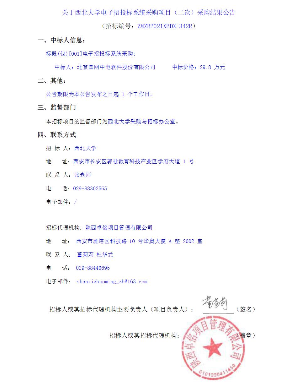 关于九游会在线登录官网电子招投标系统采购项目(二次)采购结果公告