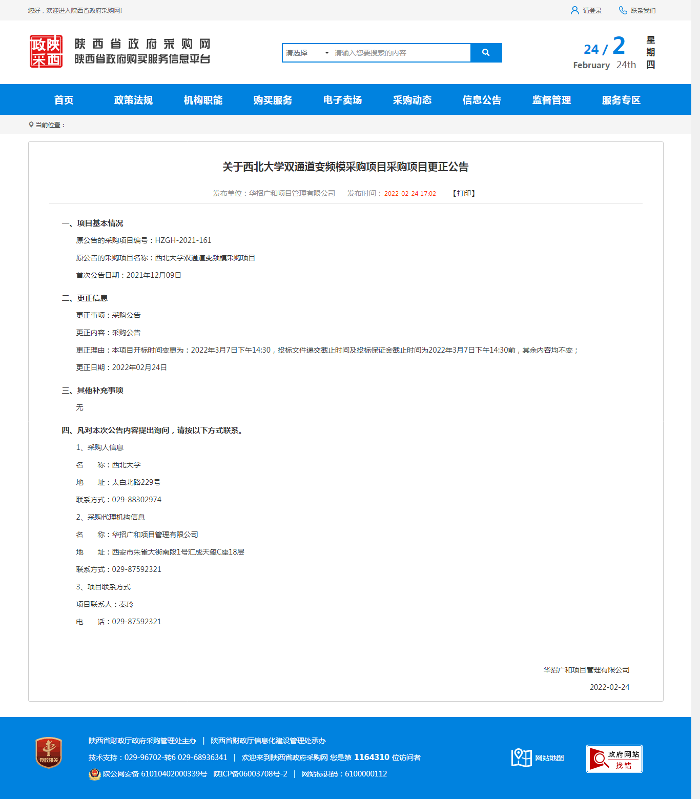 关于九游会在线登录官网双通道变频模采购项目采购项目更正公告 作者: 编辑:薛利娟 时间:2022-02-24 原公告链接:http://www.ccgp-shaanxi.gov.cn/notice/noticeDetail.do?noticeguid=8a85be337ee79f03017f2af56c9d4ca1