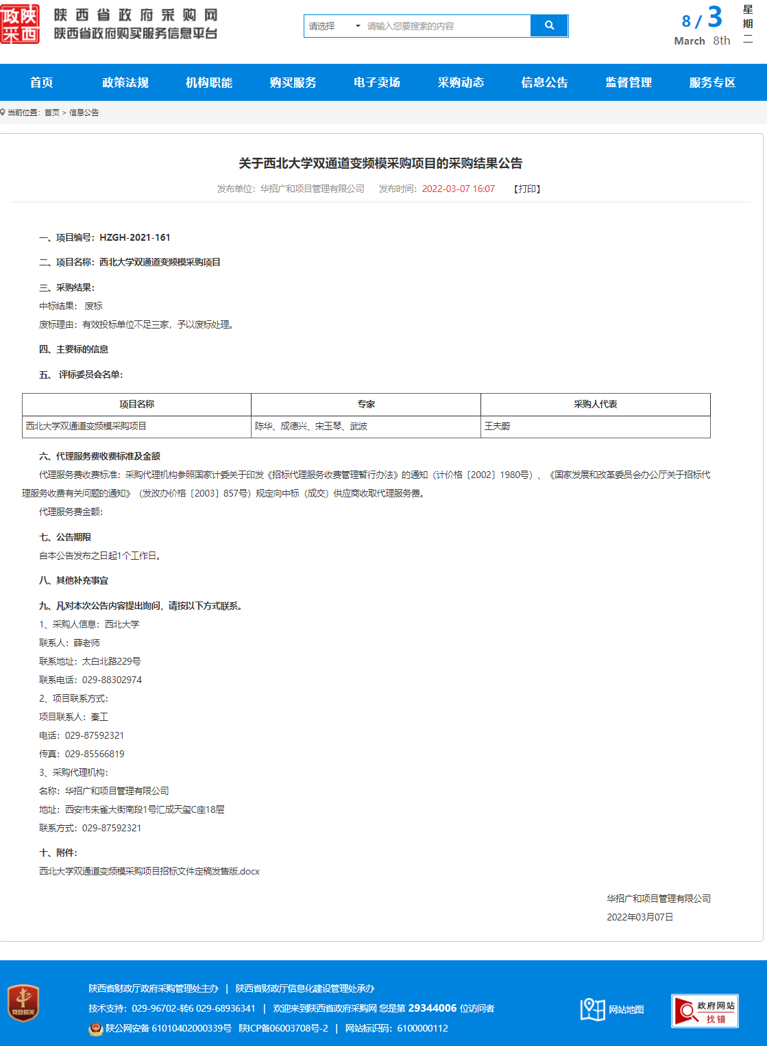 关于九游会在线登录官网双通道变频模采购项目的采购结果公告