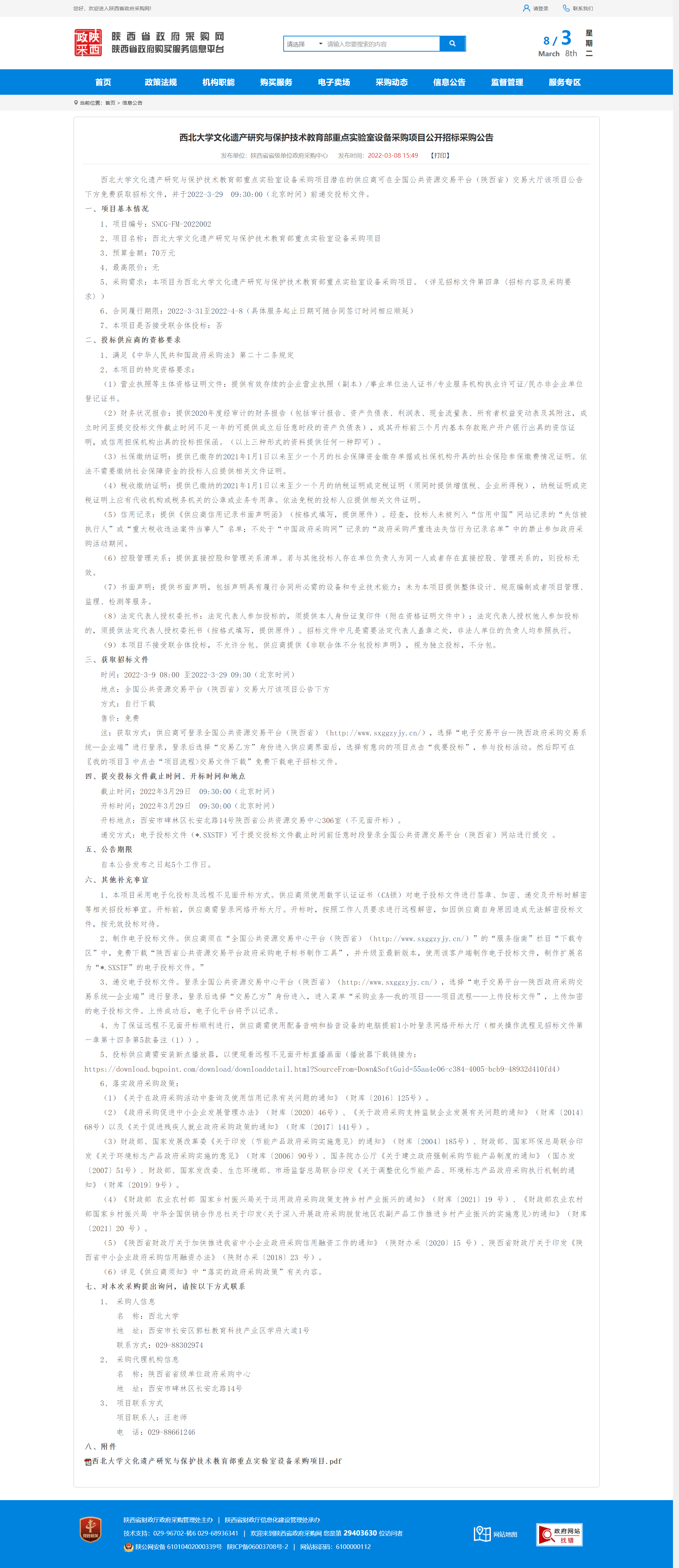 九游会在线登录官网文化遗产研究与保护技术教育部重点实验室设备采购项目公开招标采购公告 作者: 编辑:薛利娟 时间:2022-03-08 原公告链接:http://www.ccgp-shaanxi.gov.cn/notice/noticeDetail.do?noticeguid=8a85be387e22c8ad017f687dcc81045b