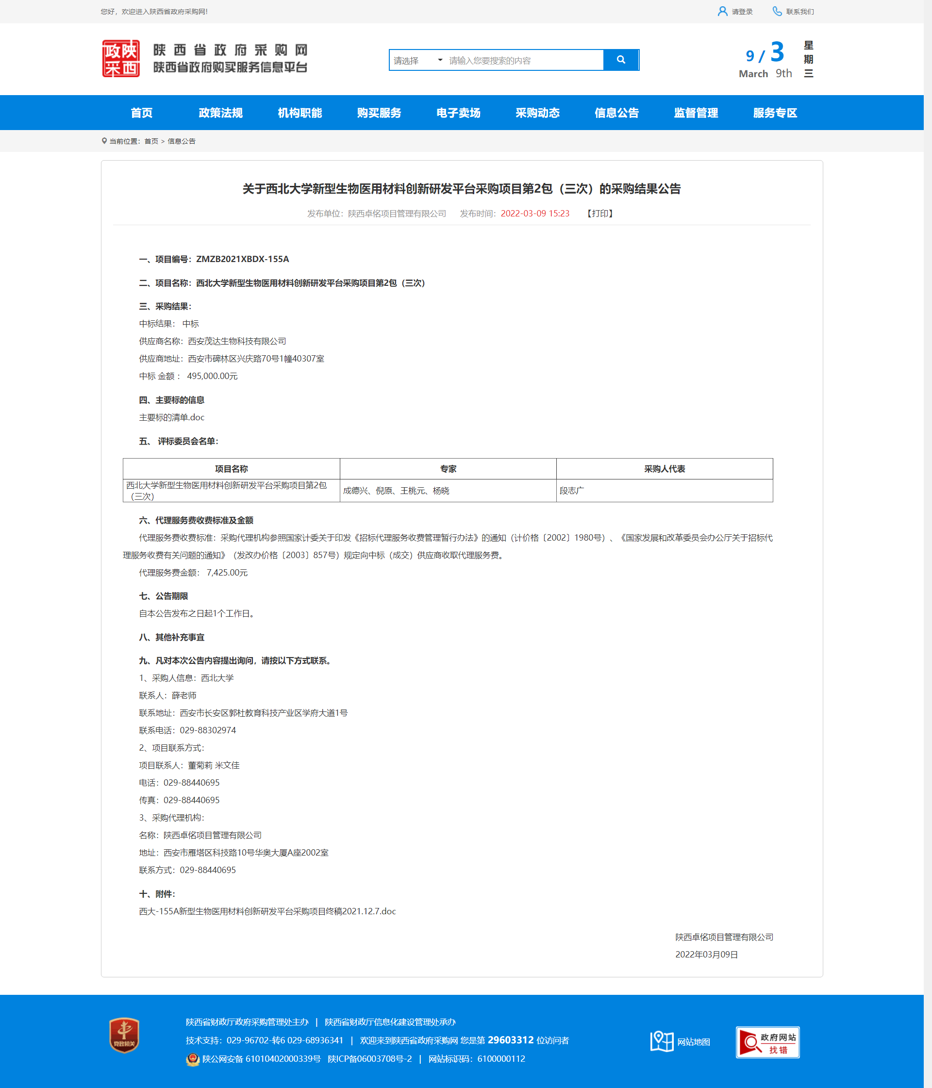 关于九游会在线登录官网新型生物医用材料创新研发平台采购项目第2包(三次)的采购结果公告 作者: 编辑:薛利娟 时间:2022-03-09 原公告链接:http://www.ccgp-shaanxi.gov.cn/notice/noticeDetail.do?noticeguid=8a85be317f3fe526017f6d6699050f58