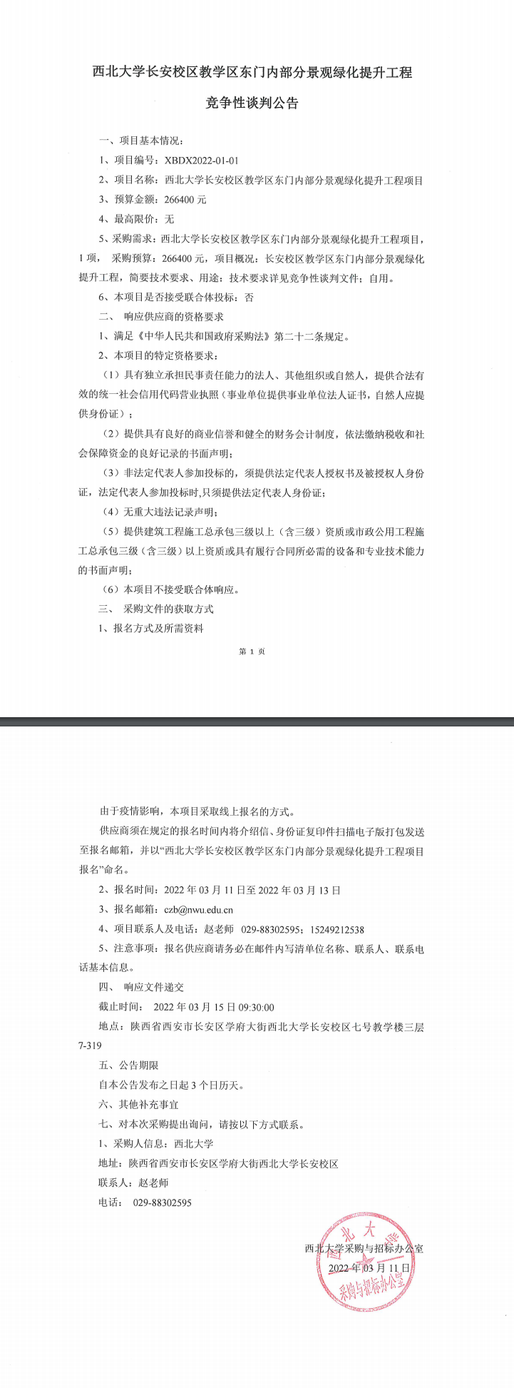 九游会在线登录官网长安校区教学区东门内部分景观绿化提升工程竞争性谈判公告