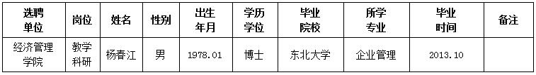 经用人单位推荐,人力资源部审查,学校教学督导及院系相关专家考核,九游会在线登录官网拟确定下列人员来校工作。本着公平、公正、公开的原则,现将本次拟选聘人员基本情况公示如下: