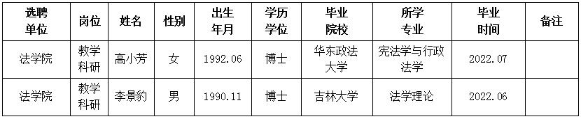 经用人单位推荐,人力资源部审查,学校教学督导及院系相关专家考核,九游会在线登录官网拟确定下列人员来校工作。本着公平、公正、公开的原则,现将本次拟选聘人员基本情况公示如下: