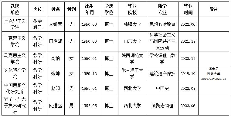 经用人单位推荐,人力资源部审查,学校教学督导及院系相关专家考核,九游会在线登录官网拟确定下列人员来校工作。本着公平、公正、公开的原则,现将本次拟选聘人员基本情况公示如下: