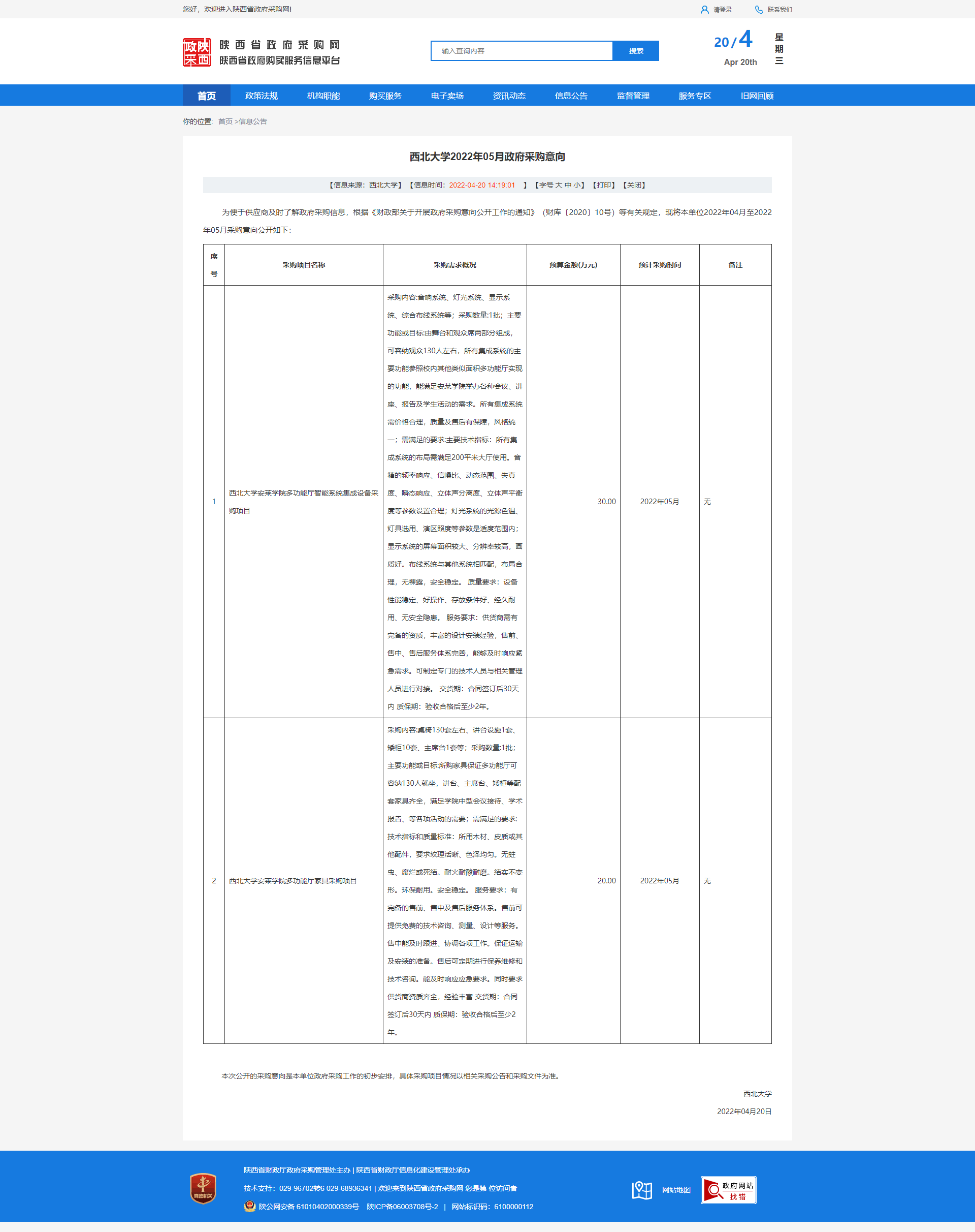 九游会在线登录官网2022年05月政府采购意向 作者: 编辑:薛利娟 时间:2022-04-20 原公告链接:http://www.ccgp-shaanxi.gov.cn/freecms/site/shaanxi/ggxx/info/2022/8a69c6fa803f5d71018044f8ef4371e6.html?noticeType=59¬iceId=ec2f07d2-c071-11ec-9a8e-08c0eb20c666