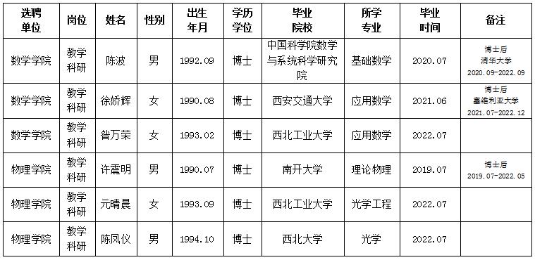 经用人单位推荐,人力资源部审查,学校教学督导及院系相关专家考核,九游会在线登录官网拟确定下列人员来校工作。本着公平、公正、公开的原则,现将本次拟选聘人员基本情况公示如下: