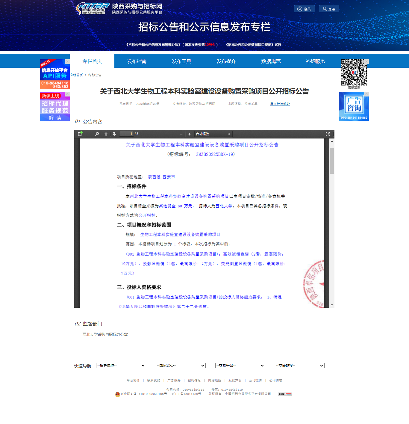 九游会在线登录官网生物工程本科实验室建设设备购置采购项目公开招标公告 作者: 编辑:薛利娟 时间:2022-05-20 原公告链接:http://bulletin.sntba.com/biddingBulletin/2022-05-20/423538.html
