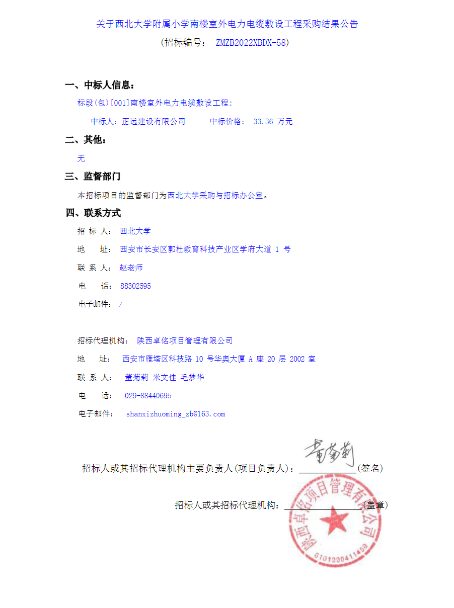 关于九游会在线登录官网附属小学南楼室外电力电缆敷设工程采购结果公告