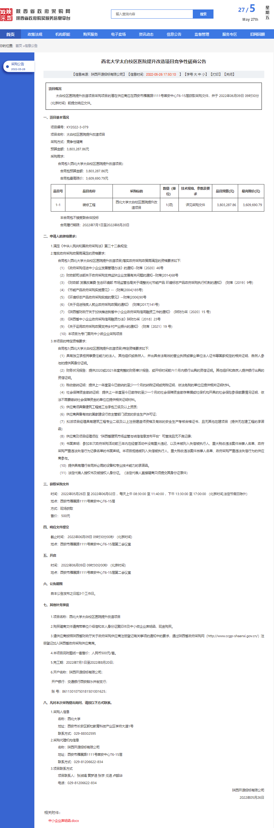 九游会在线登录官网太白校区医院提升改造项目竞争性磋商公告