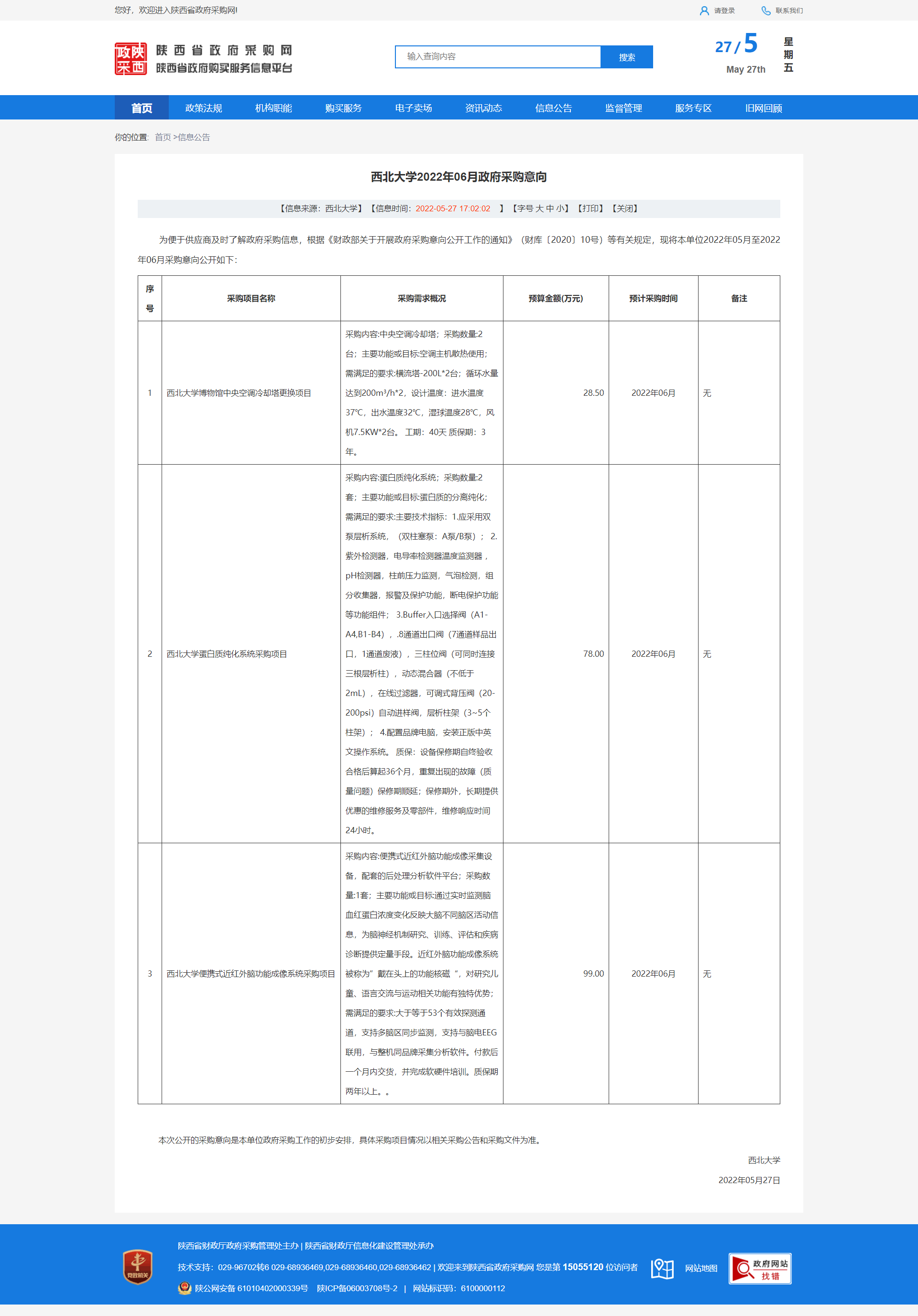 九游会在线登录官网2022年06月政府采购意向 作者: 编辑:薛利娟 时间:2022-05-27 原公告链接:http://www.ccgp-shaanxi.gov.cn/freecms/site/shaanxi/ggxx/info/2022/8a69c97180f1b0450180f4b864a96477.html?noticeType=59¬iceId=eba9d16a-dd9b-11ec-9a8e-08c0eb20c666
