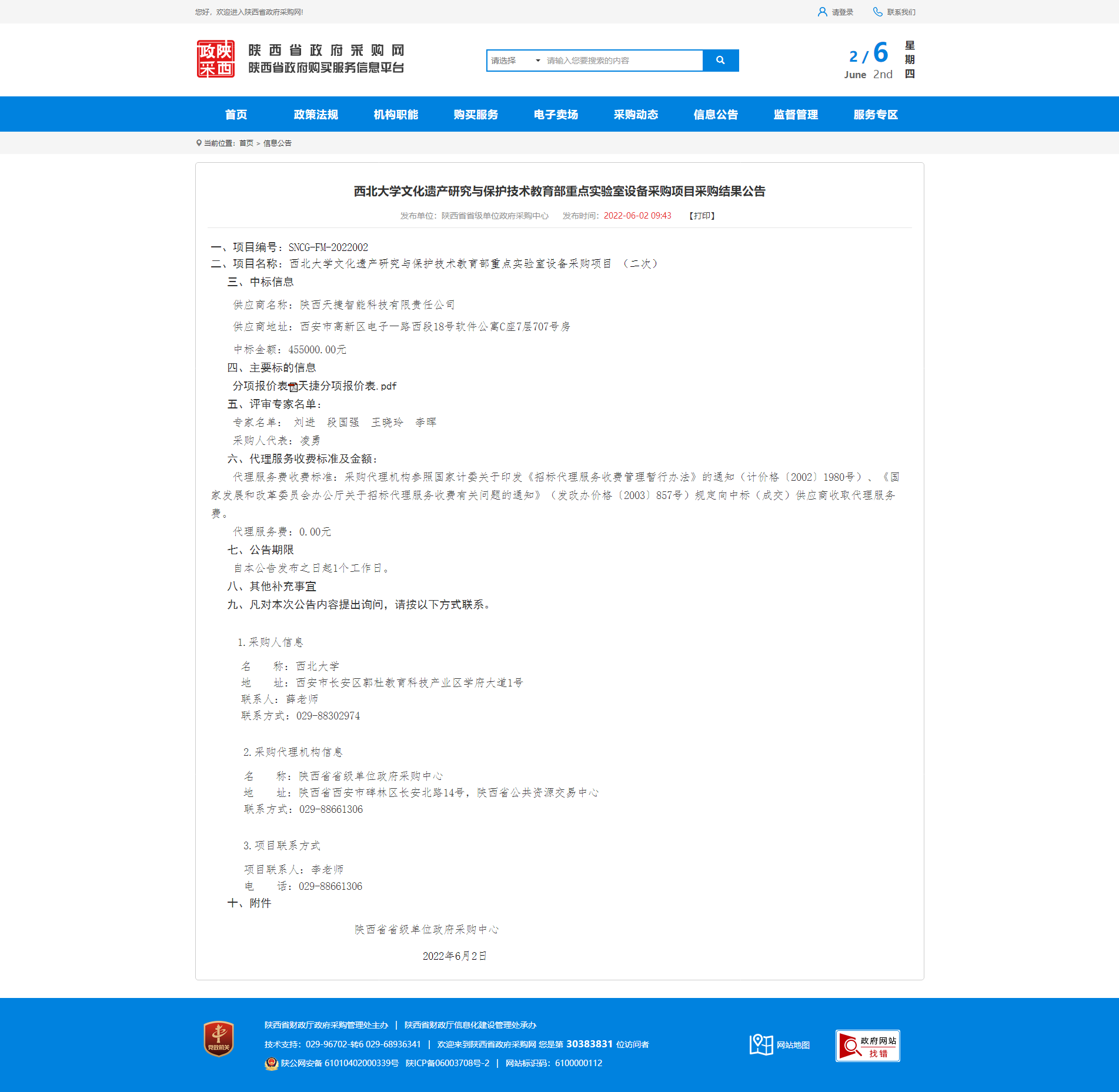 九游会在线登录官网文化遗产研究与保护技术教育部重点实验室设备采购项目采购结果公告