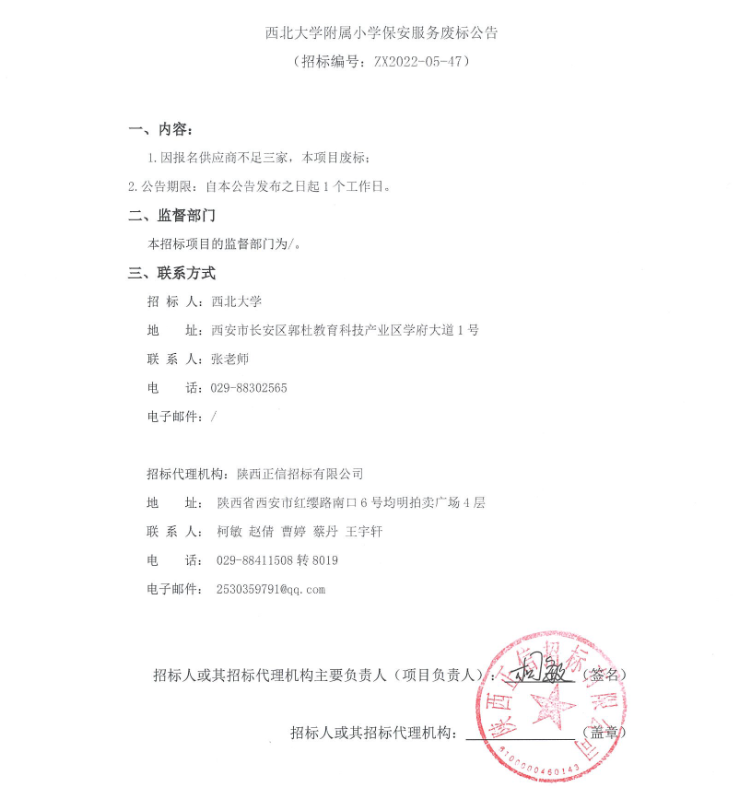 关于九游会在线登录官网附属小学保安服务废标公告