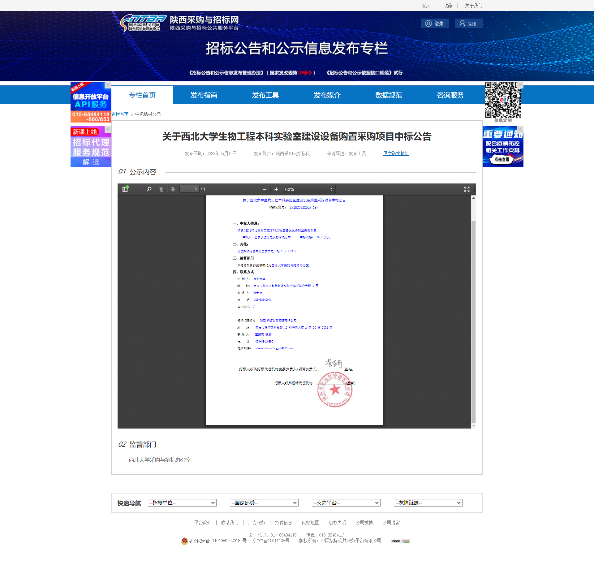 关于九游会在线登录官网生物工程本科实验室建设设备购置采购项目中标公告 作者: 编辑:薛利娟 时间:2022-06-15 原公告链接:http://bulletin.sntba.com/resultBulletin/2022-06-15/433887.html