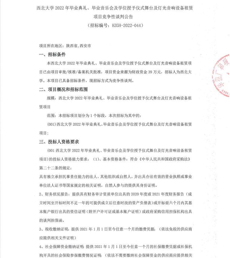 九游会在线登录官网2022年毕业典礼、毕业音乐会及学位授予仪式舞台及灯光音响设备租赁项目竞争性谈判公告