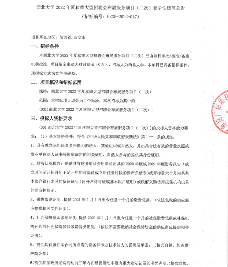 九游会在线登录官网2022年夏秋季大型招聘会布展服务项目(二次)竞争性磋商公告