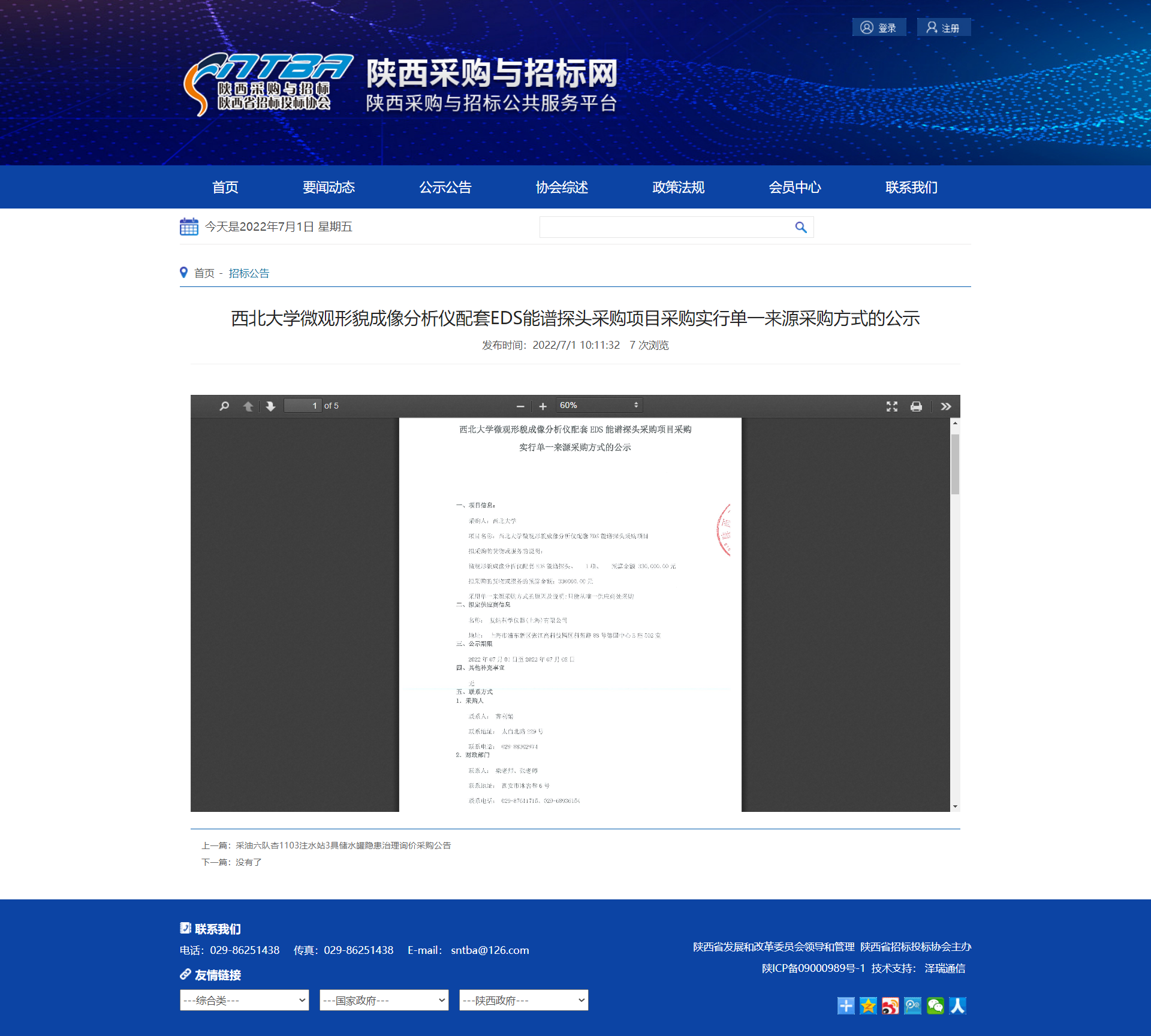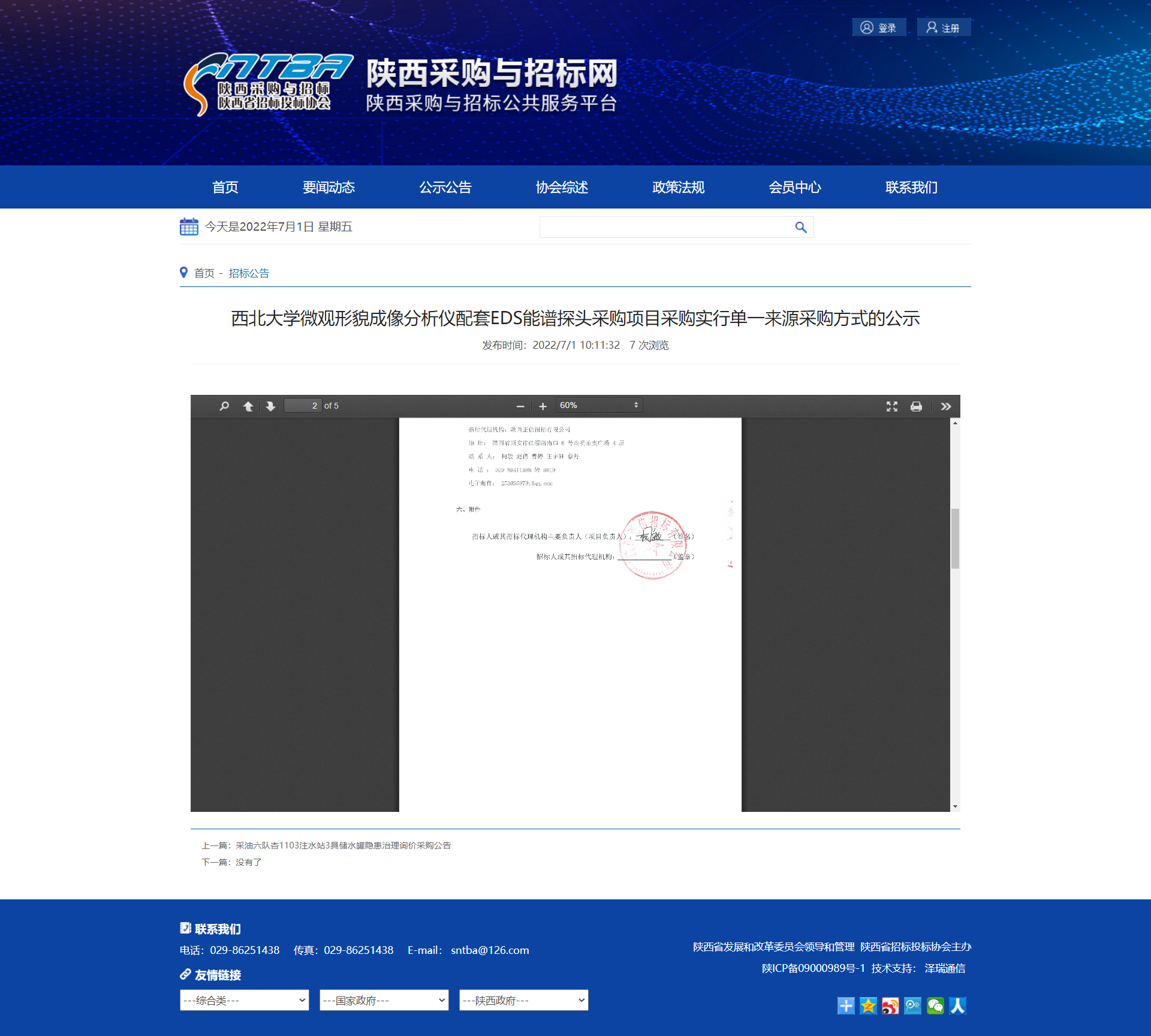 九游会在线登录官网微观形貌成像分析仪配套EDS能谱探头采购项目采购实行单一来源采购方式的公示 作者: 编辑:采购与招标办公室 时间:2022-07-01 原公告链接:http://www.sntba.com/website/gg_show.aspx?id=216192